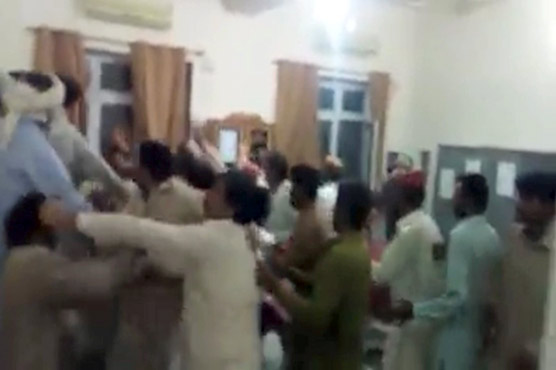 دونوں گروپوں میں جھگڑا بلدیاتی الیکشن میں ٹکٹ لینے کے معاملے پر ہوا ، ہاتھا پائی کے باعث ہسپتال کے شیشے ٹوٹ گئے