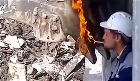 روسی مزدور وںکاسگریٹ جلانے کا انوکھا انداز