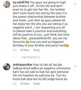 ممبئی (ویب ڈیسک) بالی وڈ کے معروف اداکار سیف علی خان کی بیٹی اداکارہ سارہ علی خان نے اپنے بھائی ابرہیم کے ساتھ بکنی کی نئی تصویویں سوشل میڈیا پر شئیر کیں۔ بالی وڈ کے معروف اداکار سیف علی خان کی بیٹی اداکارہ سارہ علی خان نے اپنے بھائی ابرہیم کے ساتھ بکنی کی نئی تصویویںسوشل میڈیا پر شئیر کیں سماجی رابطے کی ویب سائٹ انسٹا گرام پر سارہ خان نے اپنے بھائی ابراہیم کے ساتھ لی گئیں تصاویر شئیر جس میں سارہ نے بکنی پہنی ہوئی ہے اور وہ ساحل پر اہنے بھائی کے ساتھ کھڑی ہیں جبکہ تصاویر میں دیکھا جا سکتا ہے کہ ابراہیم آرام دہ محسوس نہیں کر رہے وہ کنفیوزڈ اور پریشان دکھائی دے رہے ہیں۔ ایک دوسری تصویر میں اداکارہ سوئمنگ پول کے اندر کھڑی ہیں جبکہ ابراہیم خان پول کے پاس ہی باہر کھڑے ہیں اور اس تصویر میں بھی وہ پریشان اون ان کمفرٹیبل نظر آ رہے ہیں۔تصویر کے کیپشن میں سارہ نے اپنے بھائی کو سالگرہ کی مبارکباد دی۔ سارہ علی خان کی اپنے بھائی کے ساتھ ان نا زیبا تصاویر پر اداکارہ کو نہ صرف انڈیا بلکہ پاکستان کے صارفین بھی کی طرف سے بھی تنقید کا نشانہ بنایا جا رہا ہے جبکہ کچھ لوگ ان کی تصاویر کی تعریف بھی کرتے نظر آرہے ہیں۔ جہاں اداکارہ کو تنقید کا نشانہ بنایا گیا وہیں کچھ لوگ ان کی حمایت میں بھی سامنے آئے۔