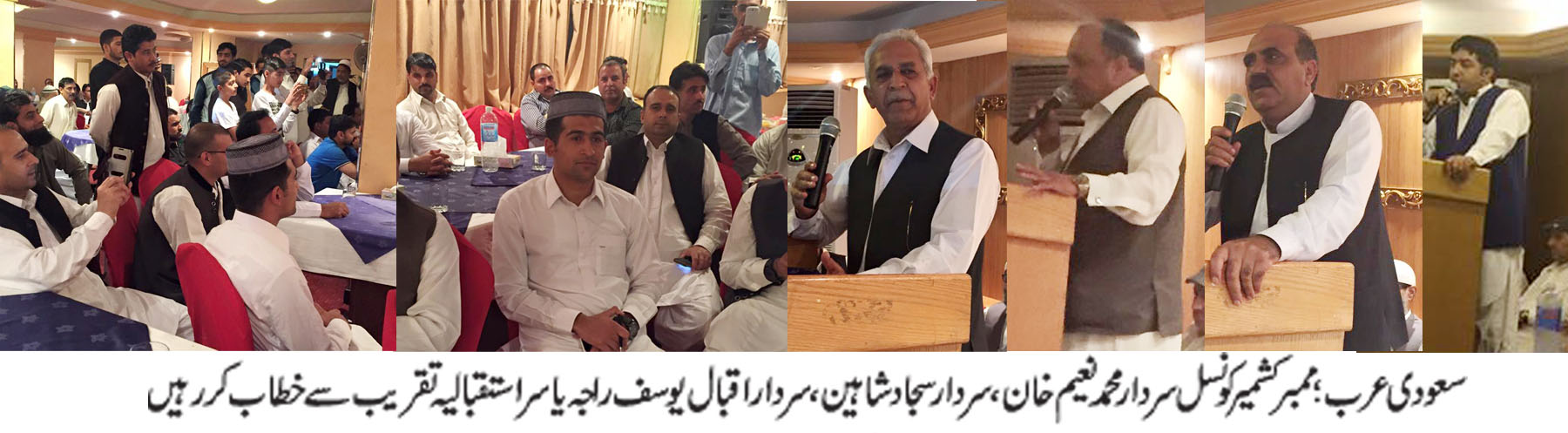 پروقار تقریب سے خطاب کرتے ہوئے ممبر کشمیر کونسل سردار محمد نعیم خان نے کہا کہ آزاد کشمیر میں آمدہ حکومت مسلم لیگ ن کی ہو گی کارکنان تیاری کریں فتح انشاء اللہ مسلم لیگ ن کی ہی ہو گی سعودی عرب میں موجود عزیزوں اور لیگی کارکنان کا شکریہ ادا کرتا ہوں جنہوں نے بہت پیار دیا اور عزت افزائی کی آپ لوگوں کے پیار کو کبھی نہیں بھولوں گا عزیزوں اور لیگی کارکنان سے نل کر دلی تسکین ہوئی۔