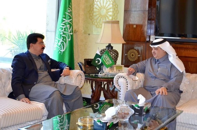 چیئرمین محمد صادق سنجرانی نے سعودی سفیر سے گفتگو میں کہا کہ ’دونوں ملکوں کے درمیان برادرانہ تعلقات ہیں۔ ہر مشکل وقت میں دونوں ممالک ایک دوسرے کے ساتھ کھڑے رہے ہیں۔ انہوں نے کہا کہ دونوں ممالک ہمیشہ بین الاقوامی معاملات اور مسائل پر مشاورت سے کام کرتے ہیں۔ چیئرمین سینیٹ نے مزید کہا کہ ’سعودی عرب کی جانب سے ہر مشکل وقت میں پاکستان کے ساتھ کھڑے رہنے کو کبھی فراموش نہیں کر سکتے۔ امید کرتے ہیں کہ سعودی عرب بھی اسی جذبے کے ساتھ تعاون جاری رکھے گا۔‘