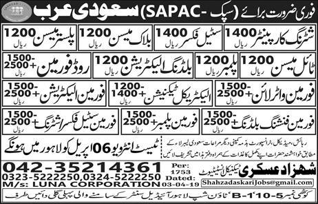 Saudi Arab Jobs Available for 100+ DAE, Technicians, HVAC, Operators & Other Posts in Multiple Companies5 April, 2019 Post Views - پوسٹ کو دیکھا گیا: 35