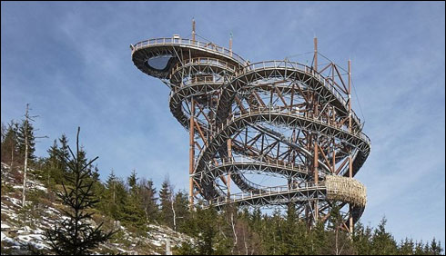 جمہوریہ چیک کے گاؤں ڈولنی موراوا میں 330فٹ بلند بل کھاتے شاہکار کواس انداز میں بنایا گیا ہے کہ یہاں آنے والے افراد سیڑھیاں چڑھتے ہوئے گول دائرے میں چارو ں اطراف کے خوبصورت مناظر دیکھ سکتے ہیں۔اس انوکھے شاہکار کو لکڑی اور اسٹیل کی مدد سے تیار کیا گیا ہے جس کا اسٹرکچرچیک ریپبلک کے مشہور آرکیٹکٹ فرینک نے ڈیزائن کیا تھا ۔تفریح کا یہ منفرد انداز دنیا بھر میں لوگوں کی توجہ کا مرکز بنا ہوا ہے۔