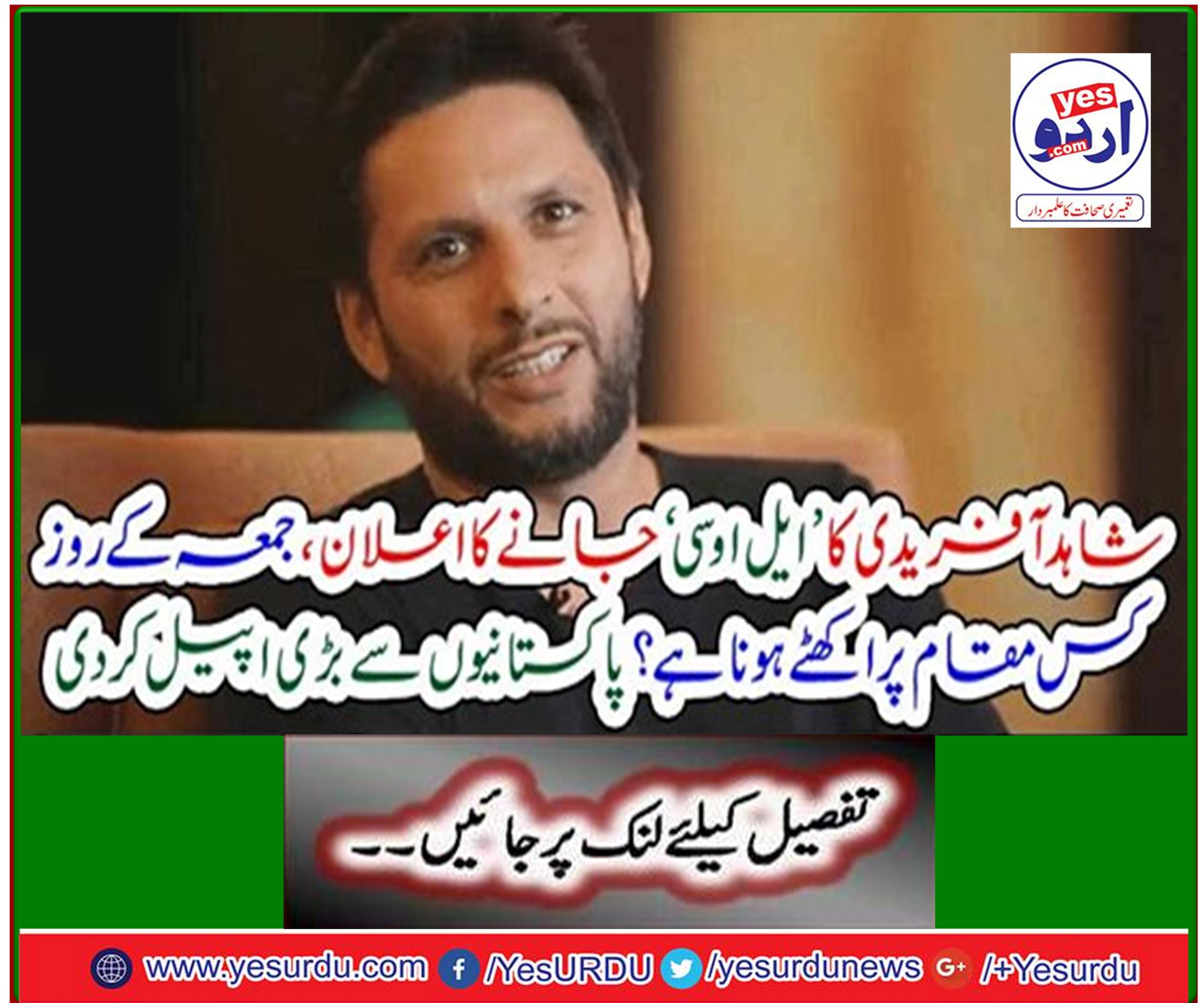 کراچی (نیوز ڈیسک) سابق کپتان بوم بوم شاہد آفریدی نے سماجی رابطے کی ویب سائٹ ٹویٹر پر ٹویٹ کرتے ہوئے کہا ہے کہ آئیے بطور قوم وزیر اعظم کے کشمیریوں کے ساتھ اظہارِ یکجہتی کے مطالبے میں ساتھ دیں۔میں جمعہ کو 12 بجے مزار قائد پرہوں گا۔کشمیری بھائیوں سے اظہار یکجہتی کے لئے میرے ساتھ