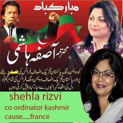 محترمہ شہلا رضوی کی طرف سے محترمہ آصفہ ہاشمی کو پاکستان تحریک انصاف فرانس ویمن ونگ کی صدر بننے پر مبارکباد کا اشتہار
