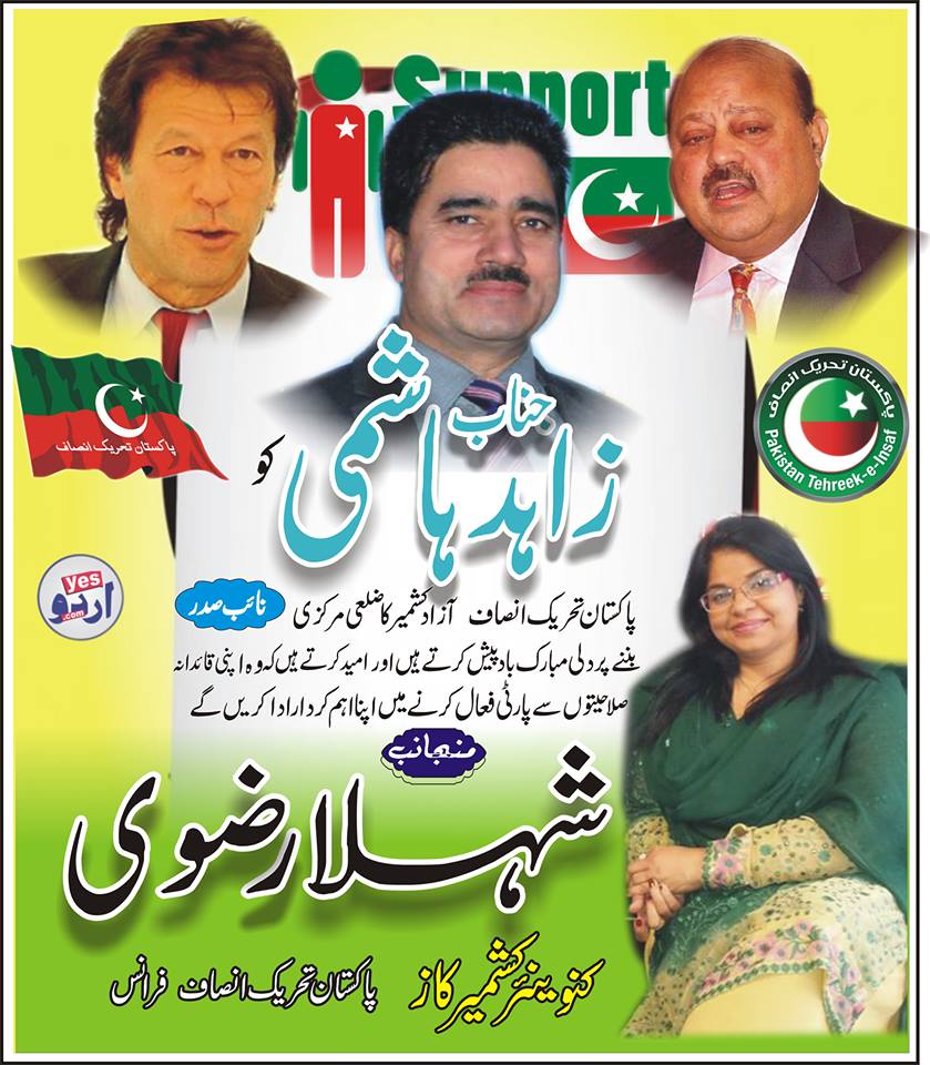 شہلہ رضوی کنوینئر کشمیر کاز جناب زاہد ہاشمی کو پاکستان تحریک انصاف آزاد کشمیر کا ضلعی مرکزی نائب صدر بننے پر مبارکباد پیش کرتے ہیں۔