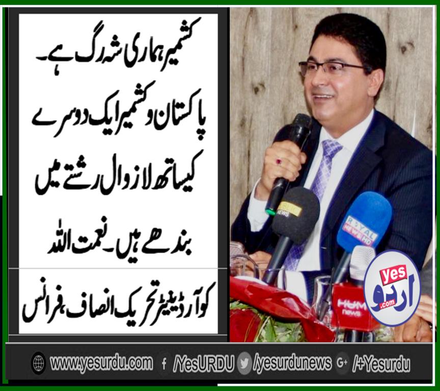کشمیر ہماری شہ رگ ہے، پاکستان وکشمیر ایک دوسرے کیساتھ لازوال رشتے میں بندھے ہیں ، شیخ نعمت اللہ