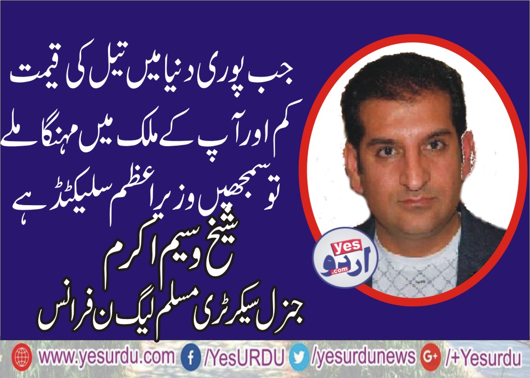 پوری دنیا میں تیل کی قیمتیں کم سے کم جبکہ پاکستان میں زیادہ وصول کی جارہی ہیں، ، نام نہاد ایماندار وزیراعظم اپنی پرانی تقاریرخود سن لیں یا اعتراف کرلیں کہ سلیکٹڈ کے پاس کوئی اختیار نہیں ہوتا، شیخ وسیم اکرم