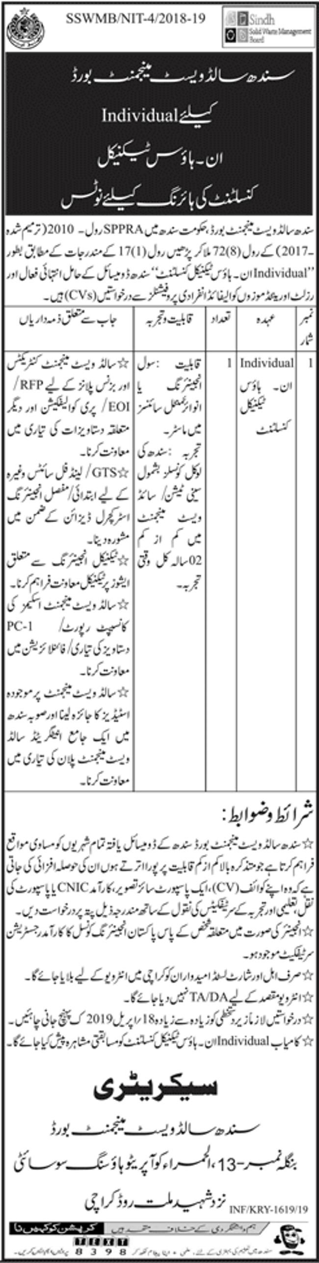 Sindh Solid Waste Management Board (SSWMB) Jobs 2019 for Technical Consultant / Engineer1 April, 2019 Post Views - پوسٹ کو دیکھا گیا: 88