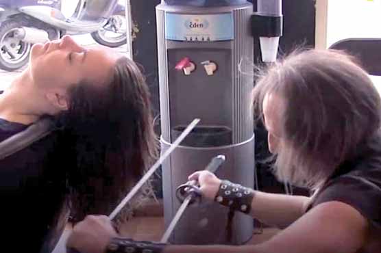 تلوار اور آگ سے بال کاٹنے والا ہیئر ڈریسر