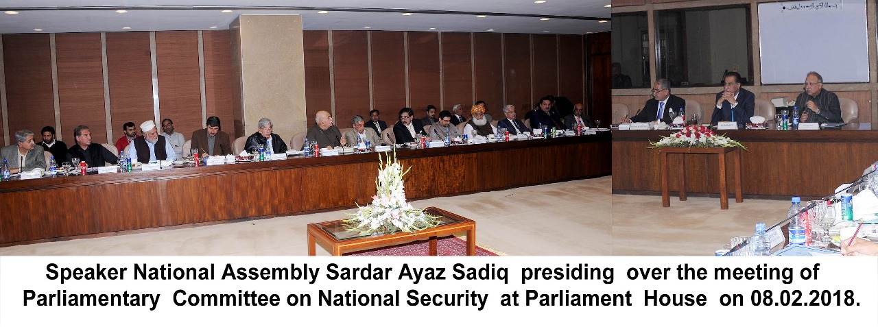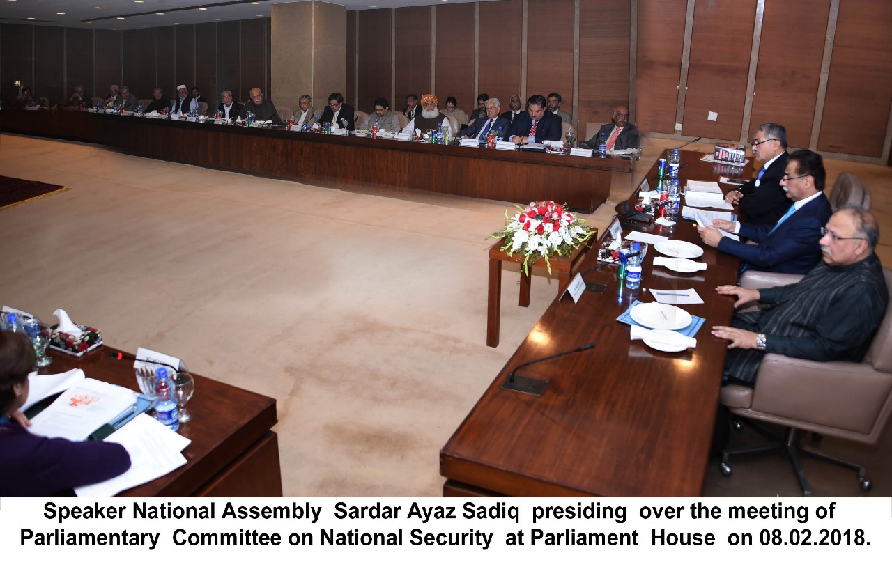 اسلام آباد (اصغر علی مبارک) پارلیمانی کمیٹی برائے قومی سلامتی کا اجلاس سپیکر قومی اسمبلی سردار ایاز صادق کی زیر صدارت، اعلیٰ دفاعی حکام کی کمیٹی کو بریفنگ۔ اجلاس میں سینٹ و قومی اسمبلی میں پالیمانی پارٹیوں کے رہنماؤں کی شرکت ۔ سپیکر قومی اسمبلی سردار ایاز صادق نے پارلیمانی رہنماؤں کو کمیٹی اجلاس بلوانے کی اہمیت سے آگاہ کیا، اجلاس میں ملکی سلامتی سے متعلق تما م معاملات کو زیربحث لایا جائے گا، وزارت خارجہ کے اعلیٰ حکام نے اجلاس کو تفصیلی بریف کیا، ملکی دفاعی اداور ں کے اعلیٰ حکام نے کمیٹی کو قومی سلامتی سے متعلق بریفینگ دی ،کمیٹی اجلاس میں سینٹ و قومی اسمبلی کے پارلیمانی لیڈروں، وزارت دفاع ، وزارت خارجہ سمیت دیگر اعلیٰ حکام کی شرکت ،
