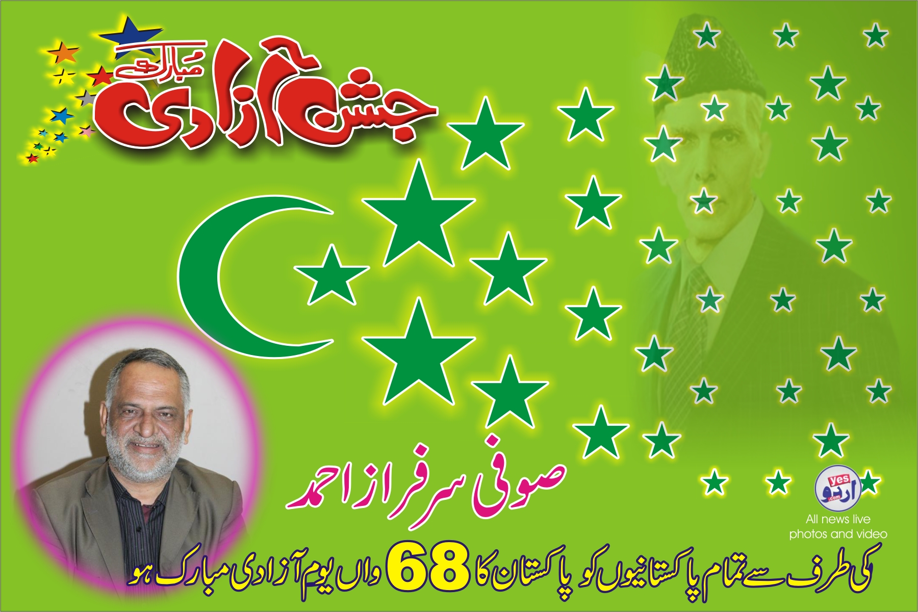صوفی سرفراز احمد کی طرف سے تمام پاکستانیوں کو پاکستان کا 68 واں یوم آزادی مبارک ہو۔Sufi Sarfraz Ahmed Post Views - پوسٹ کو دیکھا گیا: 227