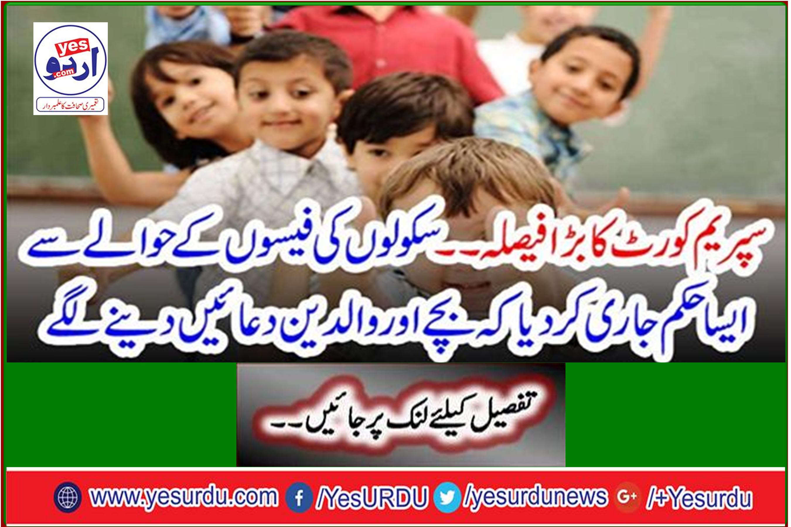 سپریم کورٹ کا بڑا فیصلہ۔۔۔ سکولوں کی فیسوں کے حوالے سے ایسا حکم جاری کر دیا کہ والدین دعائیں دینے لگے
