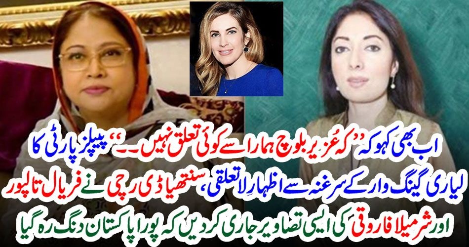 لاہور( نیوز ڈیسک) عُذیر بلوچ کی جے آئی ٹی رپورٹ پیش کر دی گئی ہے جس نے ملکی سیاست میں نیا پنڈورا باکس کھول دیا ہے تاہم اس رپورٹ کے منظر عام پر آتے ہی پیپلز پارٹی کی قیادت و رہنماؤں کی جانب سے ی دعویٰ کیا جا رہا ہے کہ ٌپیپلز پارٹی کا عُذیر بلوچ کے ساتھ کوئی بھی تعلق نہیں، عذیر بلوچ کے تمام الزامات بے بنیاد ہیں، اس سارے معاملے پر معروف امریکی بلاگر سنتھیا ڈی رچی نے بھی انٹری مار دی ہے اور شرمیلا فاروقی اور فریال تالپور سمیت مختلف رہنماؤں کی عزیر بلوچ کے ساتھ تصاویر شیئر کر دی ہیں۔
