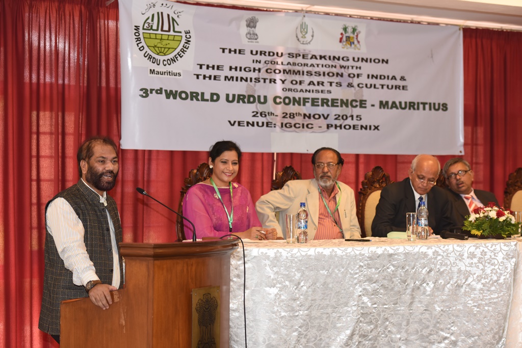 ”Relevance of Urdu in the Globalized work” (ایک اکائی میں سمٹتی دنیا میں اردو کی معنویت) کے عنوان سے منعقد اس کانفرنس کا نہایت تزک واحتشام کے ساتھ آغاز ہوا۔ابتدا ماریشس اور ہندوستان کے قومی ترانے سے ہوئی۔اس کے بعد ”اردو اسپیکنگ یونین”کے صدر جناب شہزاد عبد اللہ احمد نے خیر مقدمی کلمات پیش کرتے ہوئے کانفرنس کے اغراض و مقاصد نیز ماریشس میں اردو کے منظر نامے پر روشنی ڈالی۔اس کے بعد ہندوستان سے تشریف لائے ساہتیہ اکادمی کے سیکریٹری جناب ڈاکٹر کے۔سری نواس رائونے خطاب کیا۔