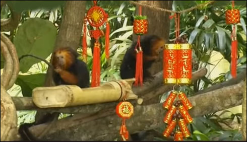 چینی سالِ نو کی آمد میں چند ہی روز باقی ہیں اوراس موقع پر تحفے تحائف لینے دینے کا رواج عام ہے تاہم سنگا پور کے چڑیا گھر میں جانوروں کو بھی کرسمس تحائف پیش کئے گئے۔ سنگا پور کے چڑیا گھرمیں بندروں کیلئے نیو ایئر ٹریٹ کا اہتمام کر تے ہوئے انہیں رنگ برنگے ریپر میں لپٹے تحائف پیش کئے گئے جن میں انکی من پسند کھانے پینے کی اشیاء موجود تھیں۔ان تحائف کو حاصل کرتے ہی بندروں میں تجسس بڑھ گیا اور انہوں نے اپنے منہ اور پنجوں کی مدد سے ان کو کھول کر اپنے تحائف دیکھے اور پسندیدہ چیزیں کھا کر محظوظ ہوئے۔