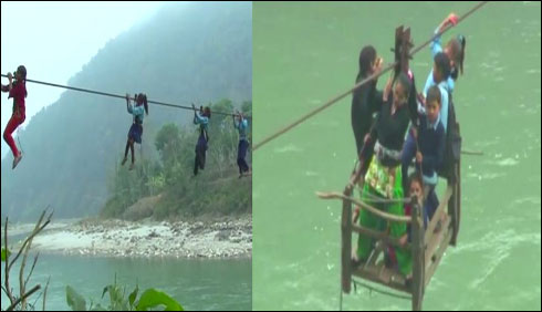 جی ہاں نیپال سے تعلق رکھنے والے یہ بچے اسکول جانے کیلئے دنیا کاخطرناک ترین سفر طے کرتے ہیں،چھوٹے چھوٹے قصبوں میں رہنے والے یہ ننھے طالب علم دریا عبور کرنے کیلئے خطرناک زپ لائن کا استعمال کرتے ہیں اور سخت محنت کے بعد دریا عبور کر کے اسکول تک پہنچتے ہیں۔علم کے حصول کیلئے خطرناک ترین سفر طے کرنے والے یہ بچے بہترین سہولتوں کے باوجودتعلیم سے دور بھاگنے والے بچوں کیلئے مثال ہیں۔