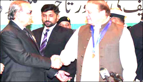 اسلام آباد……رضا کارانہ ٹیکس ادائیگی اسکیم کے اجراء کی تقریب میںوزیر اعظم میاں محمد نواز شریف انتہائی خوشگوار موڈ میں تھے، جن کے ہلکے پھلکے جملوں نے محفل کی رونق بڑھا دی۔نئے سال کے پہلے دن کی پہلی تقریب میں وزیراعظم نوازشریف خاصے موڈ میں نظر آئے،رضا کارانہ ٹیکس ادائیگی اسکیم کے اجراء کی تقریب میں ہلکے پھلکے انداز میں تبصرے کئے کہ ہال قہقہوں اورتالیوں سے گونج اٹھا۔پہلے تووزیر اعظم نے وزیر خزانہ اسحاق ڈار کی کاوشوں کو سراہا، کہا کہ ڈار صاحب اپنے شعبے کے علاوہ دنیا جہاں کا کام کرتے ہیں،پھر اپنی ایک دعا کا ذکر کیا۔ انہوں نے یہ بھی کہا کہ دعا کر رہا تھا کہ کسی کی تقریر لمبی نہ ہو۔تاجروں کی جانب سے دیئے گئے گول ڈ میڈل کے اصلی یا نقلی ہونے سے متعلق بھی سوال پوچھا کہ یہ جو گولڈمیڈل دیا گیا ہے واقعی اصلی ہےیہی نہیں وزیر اعظم نے لگے ہاتھوں تاجر رہنما کومشورہ بھی دے ڈالاکہخواجہ صاحب اگر کبھی الیکشن لڑنا چاہیں تو ہم سے رجوع کیجیےگا