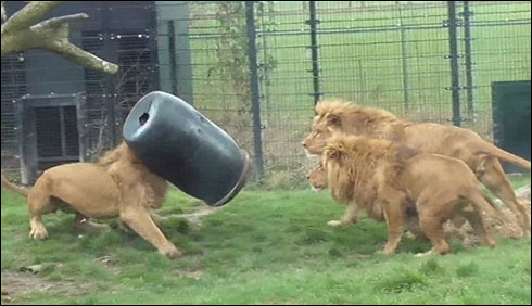 چڑیا گھر میں اپنے دوستوں کے ساتھ شرارتیں کرتے اس شیر نے مصیبت کو خود دعوت دی ،اور ڈرم کے ساتھ کھیلتے ہوئے اپنا سر اس میں پھنسا بیٹھا۔اس کے ساتھی بھی مدد کو آئے لیکن ناکام رہے، بعد میں چڑیا گھر کے ملازمین نےشیر کی اس مشکل کو آسان کیا اور ڈرم سے اس کا سر آزاد کرادیا۔
