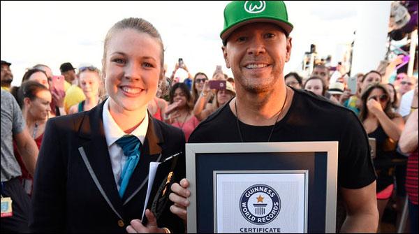 47سالہ امریکی سنگر اور سونگ رائٹر ڈونی والبر گ نے کروز شپ میں یہ کارنامہ سر انجام دیا جہاں ان کے 3ہزار سے زائد مداحوں نے انہیں گھیر لیا۔