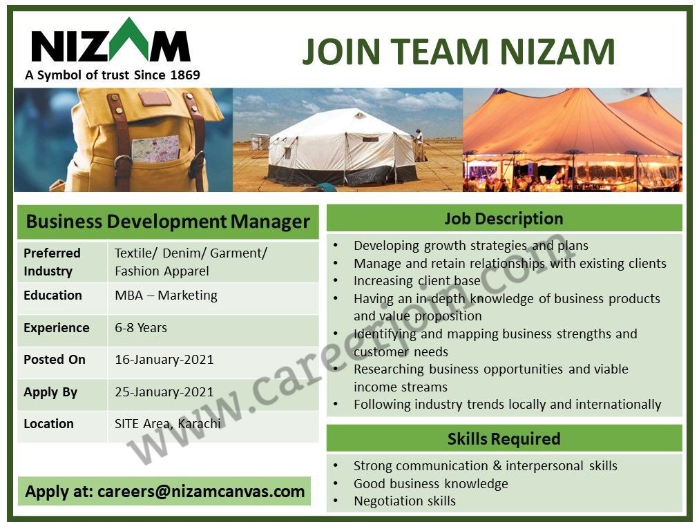NIZAM Canvas Jobs Business Development Manager-Last Date to Apply: 25 January 2021