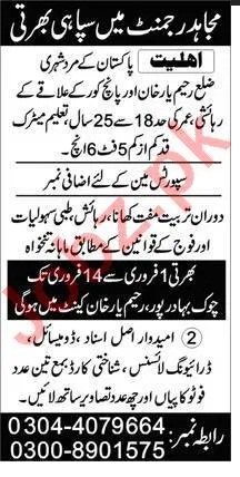 Latest Mujahid Force Army jobs Posts Rahim Yar Khan 2021