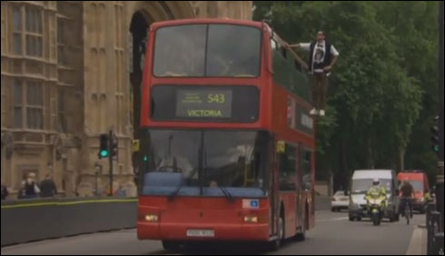 لند ن……جادوگری یا آنکھوں کادھوکا،ڈبل ڈیکر بس کی سائیڈ پر بغیرکسی سہارے کے لٹک کر سفر کرتے نوجوان نے لوگوں کو دنگ کردیا۔