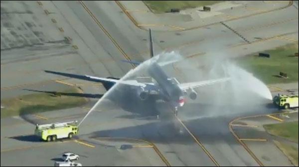 نو منتخب صدر ڈونلڈ ٹرمپ سابق صدر باراک اوباما سے ملاقات کے لئے وائٹ ہاؤس جارہے تھے ،جہاں روانگی کے وقت ان کے طیارے کو دو گاڑیوں کے ذریعے واٹر کینن سلامی دی گئی۔