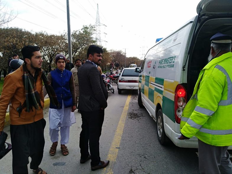 اسلام آباد: (اصغر علی مابرک) وفاقی دارالحکومت اسلام آباد کے علاقہ راول ڈیم کے قریب ٹریفک حادثے کے دوران دو تیز رفتار موٹر سائیکل آپس میں ٹکرا گئے۔ جس کے نتیجے میں دو افراد راجہ عارف اور محمد حسن شدید زخمی ہوگئے۔ دونوں زخمیوں کو ریسکیو 1122 نے پمز ہسپتال میں منتقل کر دیا