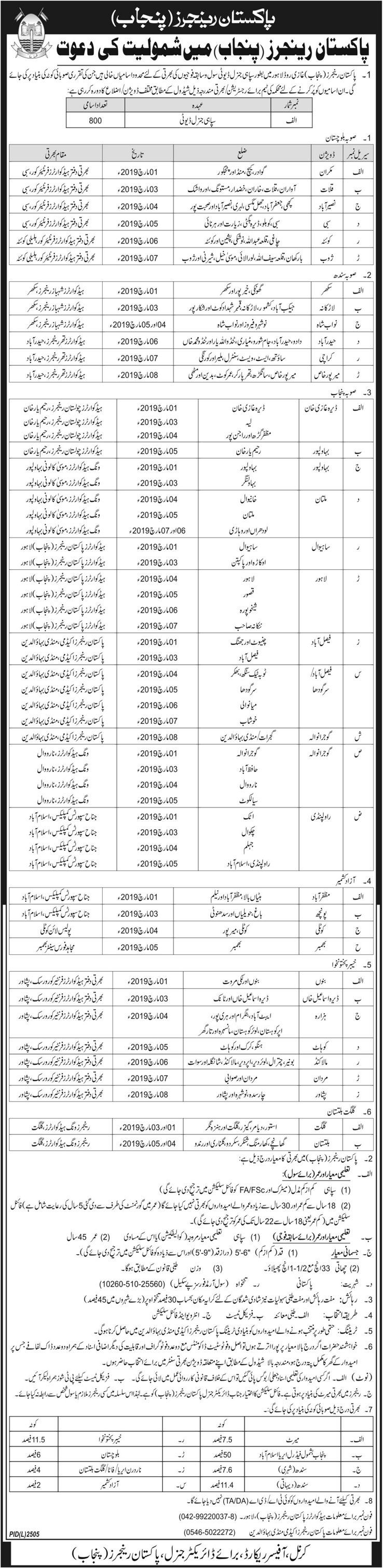 Pakistan Rangers (Punjab) Jobs 2019 – Apply Online: