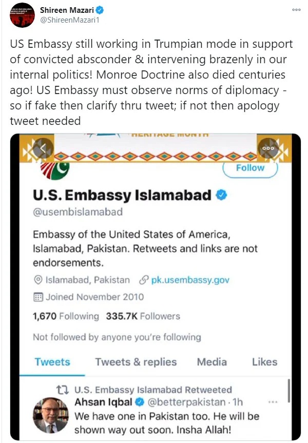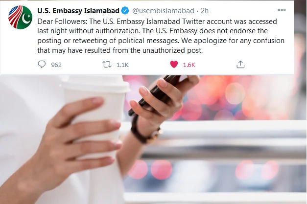 Dear Followers: The U.S. Embassy Islamabad Twitter account was accessed last night without authorization. The U.S. Embassy does not endorse the posting or retweeting of political messages. We apologize for any confusion that may have resulted from the unauthorized post.