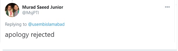 امریکی ایمبیسی کی وضاحتی ٹویٹ میں کہا گیا کہ ’اسلام آباد سفارتخانے کا ٹوئٹر اکاؤنٹ گزشتہ شب بغیر اجازت استعمال کیا گیا۔ امریکی ایمبیسی سیاسی پیغامات پوسٹ کرنے یا ریٹویٹ کرنے کی حمایت نہیں کرتی۔ ہم بغیر اجازت کی گئی پوسٹ سے پیدا ہونے والے کسی بھی ابہام پر معذرت خواہ ہیں‘۔