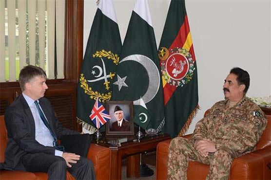 آرمی چیف جنرل راحیل شریف سے برطانوی وزیر اعظم کے نمائندہ خصوصی نے ملاقات کی، جس میں سلامتی کی صورتحال پر تبادلہ خیال گیا گیا۔راولپنڈی: (یس اُردو) افغانستان اور پاکستان کے لئے برطانوی وزیر اعظم کے نمائندہ خصوصی اون جن کنز نے جی ایچ کیو راولپنڈی میں جنرل راحیل شریف سے ملاقات کی۔ ملاقات میں باہمی دلچسپی کے امور اور خطے میں سلامتی کی مجموعی صورتحال پر تبادلہ خیال گیا گیا، افغانستان کے حوالے سے بھی بات چیت ہوئی۔