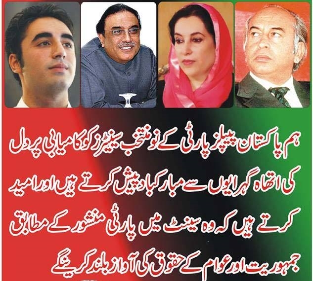 ہم سب پی پی پی کے تمام نو منتحب سینیٹرز کو منتحب ہونے پر دلی مبارک باد پیش کرتے ہیں اور پی پی پی کے چیرمین بلاول بھٹو زرداری اور کو چیرمین آصف زرداری پر مکمل اعتماد کا اظہار کرتے ہیں۔