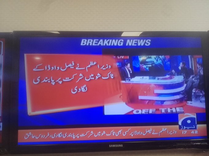 ان کی بات کا مطلب یہ ہے کہ فوج ہی ڈیل کرتی ہے۔انہوں نے کہا کہ فیصل واوڈا کودوہفتے کی کوئی سزا نہیں ہے ، ان کوڈسمس ہوناچاہئے تھا اور وزارت سے ان کی چھٹی کروانی چاہئے تھی ۔جبکہ دوسری جانب ایک خبر کے مطابق نجی نیوز چینل کے پروگرام میں بوٹ لے جانے پر وزیراعظم نے وفاقی وزیر فیصل واوڈا پر پابندی عائد کردی۔مائیکرو بلاگنگ ویب سائٹ ٹوئیٹر پر مشیر اطلاعات فردوس عاشق اعوان نے کہا کہ وزیراعظم عمران خان نے وفاقی وزیر فیصل واوڈا سے نجی ٹی وی کے ٹاک شو میں ان کے رویے پر وضاحت طلب کر لی۔وزیراعظم نے فیصل واڈا کی کسی بھی ٹاک شو پر آئندہ دو ہفتوں کیلئے شرکت پر پابندی عائد کردی ہے۔اس پر رد عمل دیتے ہوئے اینکر پرسن روف کلاسرا نے کہا کہ جس وزیر کو برطرف ہونا چائیے تھا کہ پوری قوم کے سامنے لائیو بوٹ رکھ دیا اور ادارے کی ساکھ پر سوالات اٹھوا دیے اسے دو ہفتے کے لیے بین کرنا مذاق اور اسے بچانے کی کوشش ہے۔ویسے اس میڈیا پر بھی تین حرف بھیج دیں جو ایسے وزیر کو دو ہفتے بعد بلا کر ملک اور قوم کے لیے مشورے مانگے گا۔واضح رہے کہ اینکر پرسن کاشف عباسی کے پروگرام پر 60روز کی پابندی لگائی گئی ہے ۔
