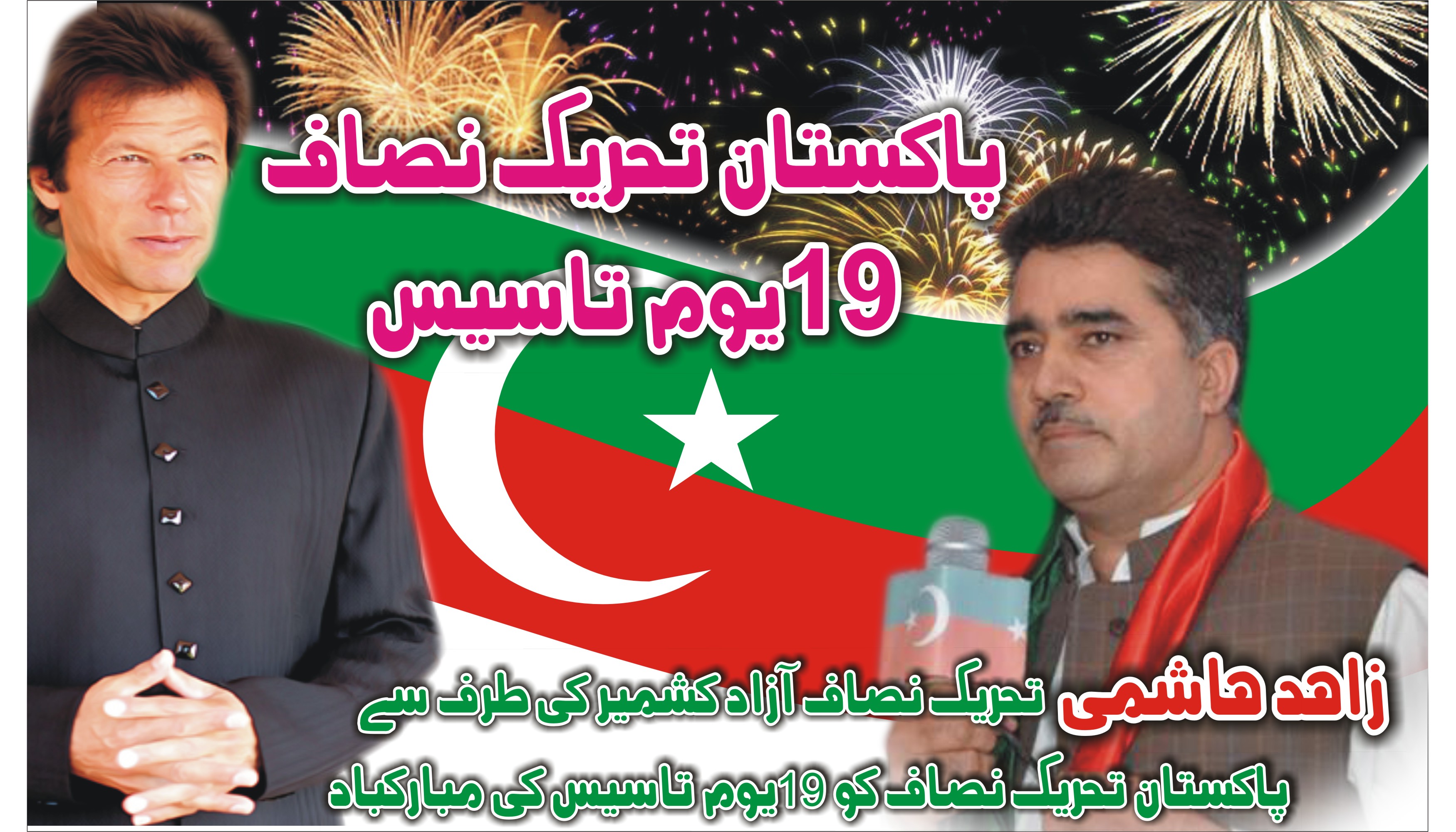 زاہد ہاشمی تحریک انصاف آزادکشمیر کی طرف سے پاکستان تحریک انصاف کے ۱۹یوم تاسیس کی مبارکباد کااشتہار