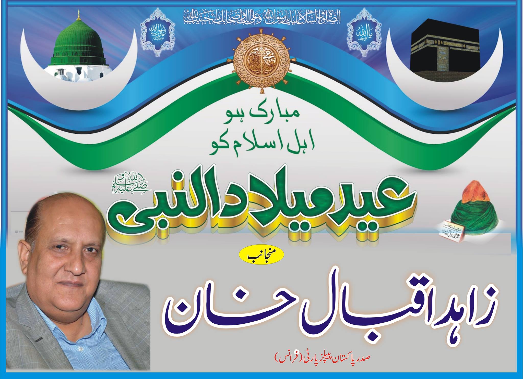 پاکستان پیپلز پارٹی فرانس کے صدر زاہد اقبال خان کی طرف سے عید میلاد النبی کا اشتہار
