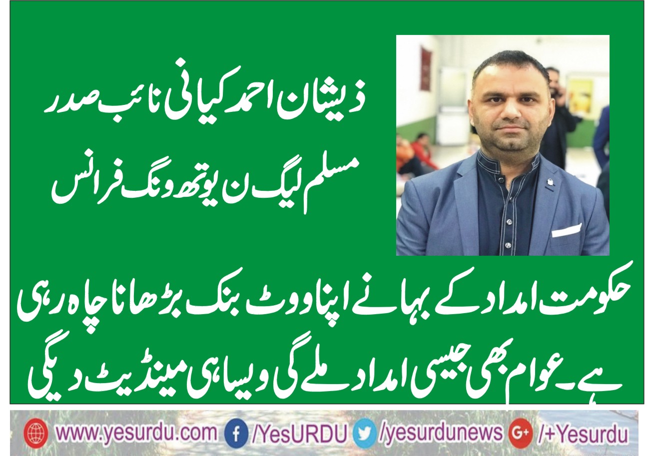 حکومت امداد کے بہانے اپنا ووٹ بنک بڑھانا چاہ رہی ہے جس میں اسے شدید ناکامی کا سامنا کرنا پڑیگا، ذیشان احمد کیانی